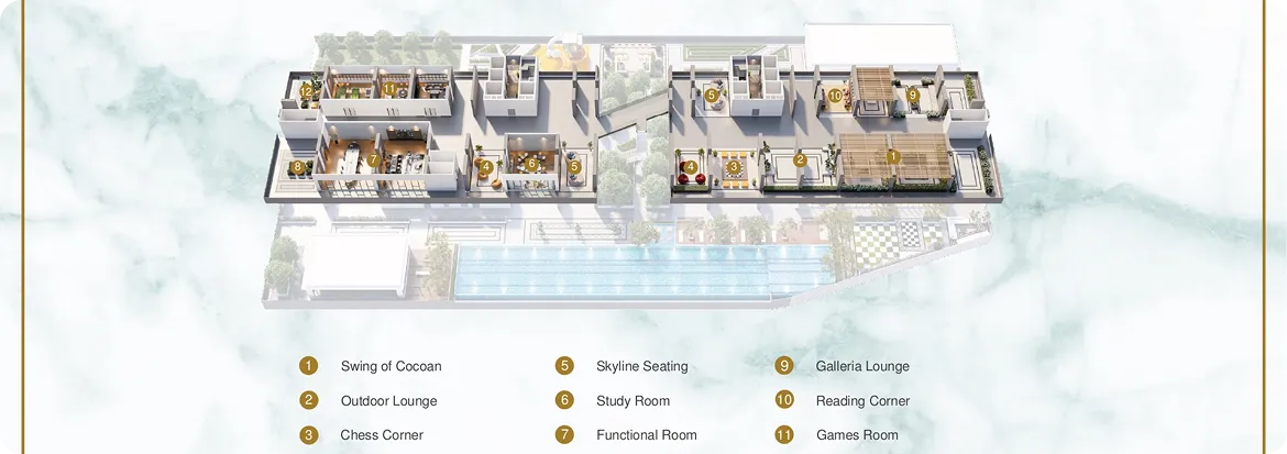 Disclaimer: All information contained in this website, including but not limited to measurement of the built-up area, specifications, plans, drawings, images, pictures, visuals, illustration, features, furniture & fittings layout, and the presentation of the show units/houses and the Development/Project are subject to change as may be required by the relevant authorities or required or recommended by the Developer’s architect or engineer and without notification to you and shall not be taken as the identical or exact representation of the actual unit that is to be or being purchased by you or part of an offer or contract. Please refer to the sale and purchase agreement of the actual unit being purchased for specification and description approved by the relevant authorities. All illustrations are artist’s impressions and such illustrations may differ from the actual final presentation of the unit and area and are subject to change. The lifestyle and presentation and the show units’ interior design and decoration depicted herein are a mere suggestion and cannot form part of an offer or contract. The implementation of the depicted lifestyle and presentation depends on collective agreement of all owners to contribute towards the set-up, maintenance of necessary fittings or accessories of respective facilities and provision of the relevant lifestyle services.